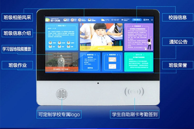 電子班牌正是智慧教室的載體,它不再是傳統(tǒng)意義的“班牌”,它是一款集觸摸屏技術(shù)、RFID技術(shù)、多媒體技術(shù)、智能云終端軟件技術(shù)、云平臺技術(shù)為一體的綜合信息終端,為學(xué)生課堂教育的主要場所和環(huán)境打造了一個展示窗口和互動平臺。它有助于解決學(xué)生缺席選修課程這一問題,是學(xué)校校園安全工作的重要項目,是“走班制”實行后學(xué)校急需的教育教學(xué)工具;通過色彩鮮艷、友好的人機交互界面向?qū)W生傳達校園文化、集體榮譽、個人風(fēng)采,將豐富的、健康的、陽光的課余氛圍層層遞進,深入人心,對學(xué)校德育工作、減負工作均起到積極有效的作用。